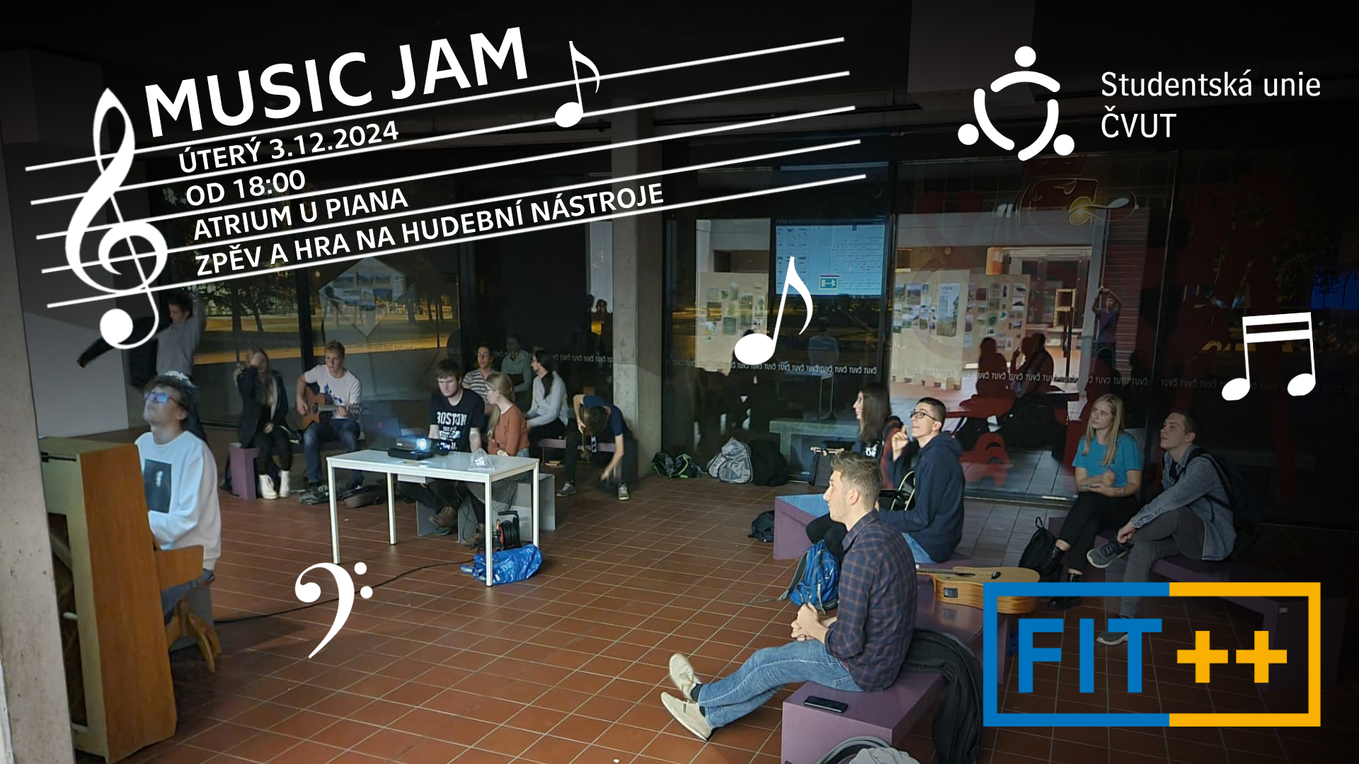 Oblíbené muzicírování se po delší pauze vrací! Přines si libovolný hudební nástroj, hlasivky a dobrou náladu. Doraž v úterý 3. 12. v 18:00 do atria Nové budovy ČVUT ke klavíru.