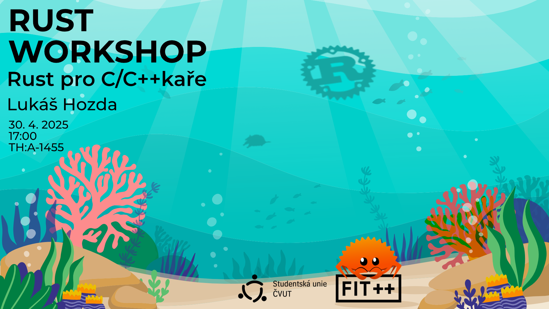 Tak přijď 30. 4. do TH:A-1455 na Rust workshop, kde nám Lukáš Hozda z Braiins vysvětlí rozdíly, výhody a nevýhody Rustu oproti klasickým FIŤáckým jazykům jako je C, či C++. Workshop je samozřejmě otevřený jak začátečníkům, tak i pokročilejším, co se chtějí o Rustu něco nového dozvědět.